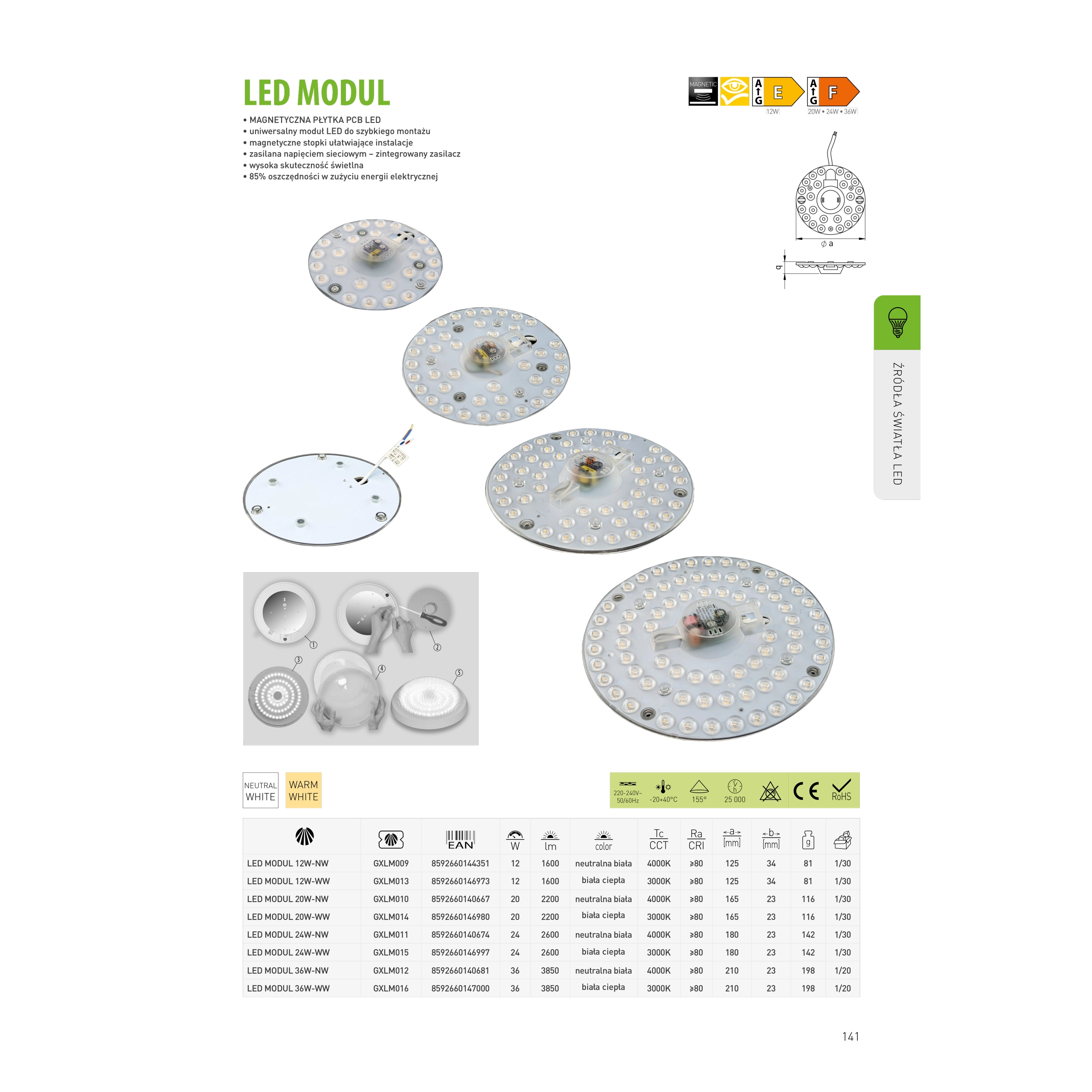 Greenlux LED MODUL 20W-WW 2200lm - Magnetický LED modul to oświetlenie LED, który łączy estetykę z oszczędnością energii — komfortowe, równomierne światło na co dzień.