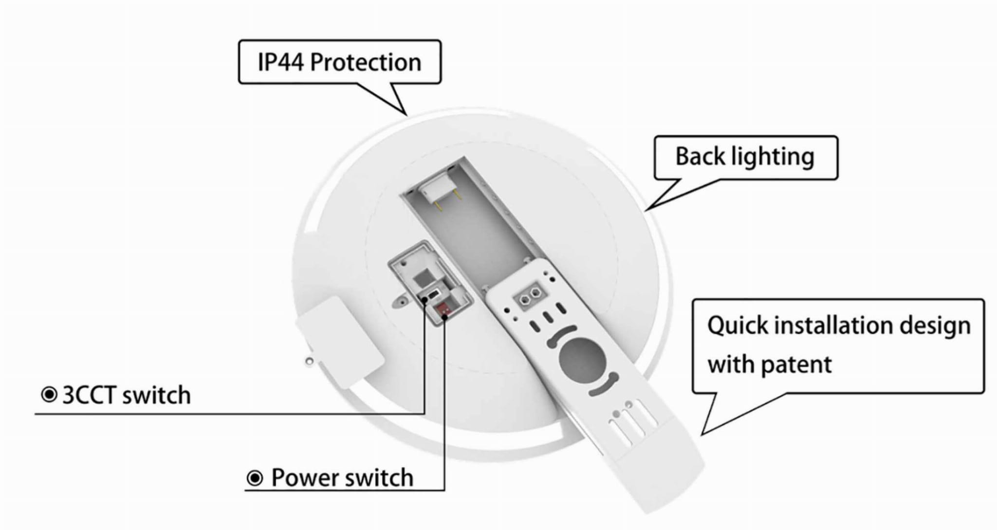 Wielofunkcyjna oprawa LED SMD w nowoczesnym designiePrzeznaczona do montażu sufitowego lub naściennego.Instalacja jest szybka i prosta dzięki systemowi wsuwania i zatrzasku na uchwycie montażowym.Podłączenie oprawy ułatwia łatwo dostępna złączka bezśrubowa.Możliwość prowadzenia przewodu zasilającego od góry lub z boku.Dwustronne rozproszenie światła zapewnia doskonałe oświetlenie dolnych przestrzeni oraz eleganckie podświetlenie sufitu.Podczas instalacji, za pomocą przełączników wbudowanych z tyłu oprawy, można zmienić temperaturę barwową w trzech stopniach (3000/4000/6000 K) oraz moc oprawy w czterech stopniach (24/18/12/6 W). Ustawienie fabryczne to 24 W / 4000 K.Obudowa oprawy wykonana jest z ABS, a dyfuzor z PC.Mleczny klosz z