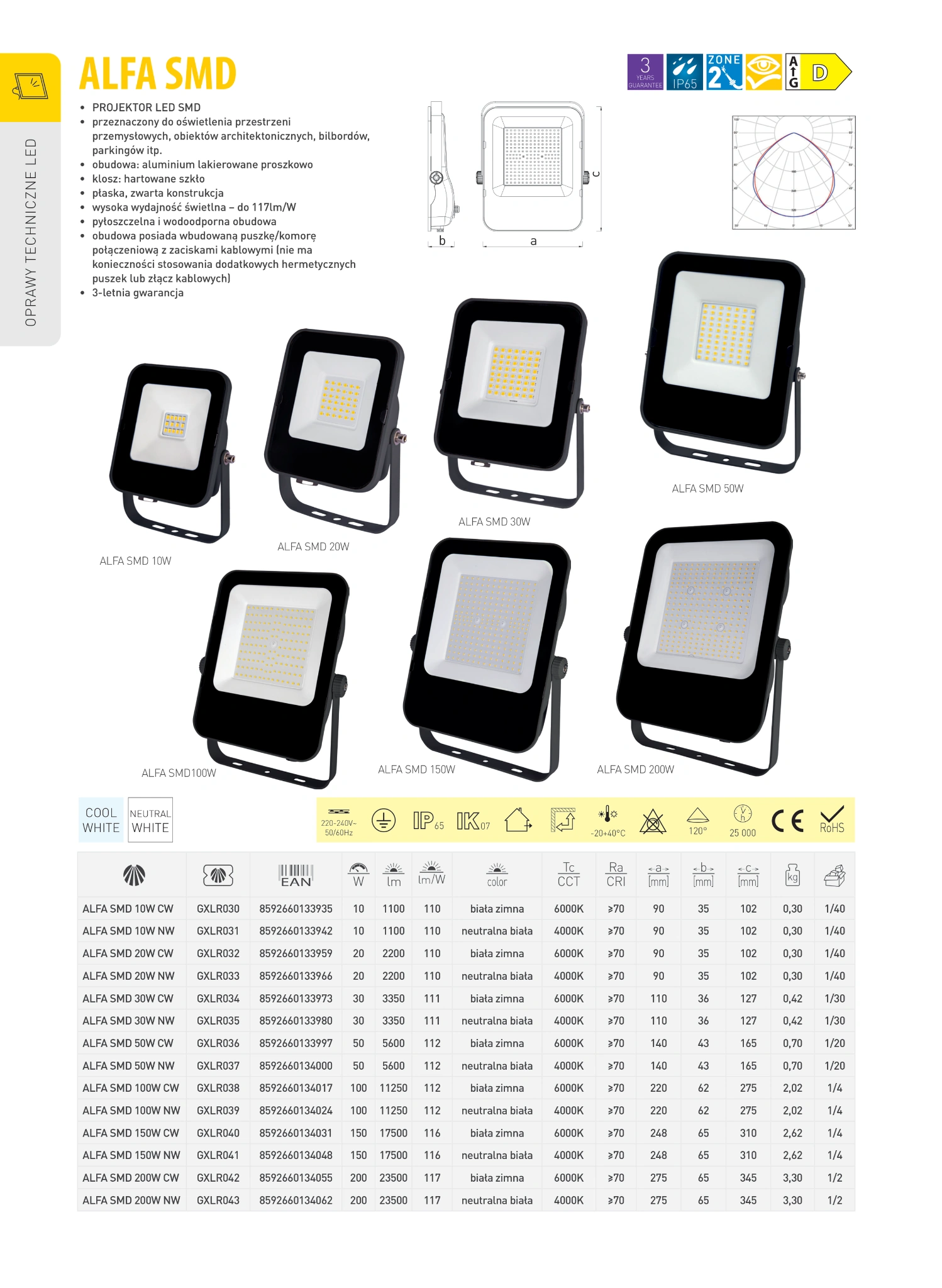 Bogata gama barw, mocy i napięć – od eleganckich opraw LED po mocne oświetlenie robocze.