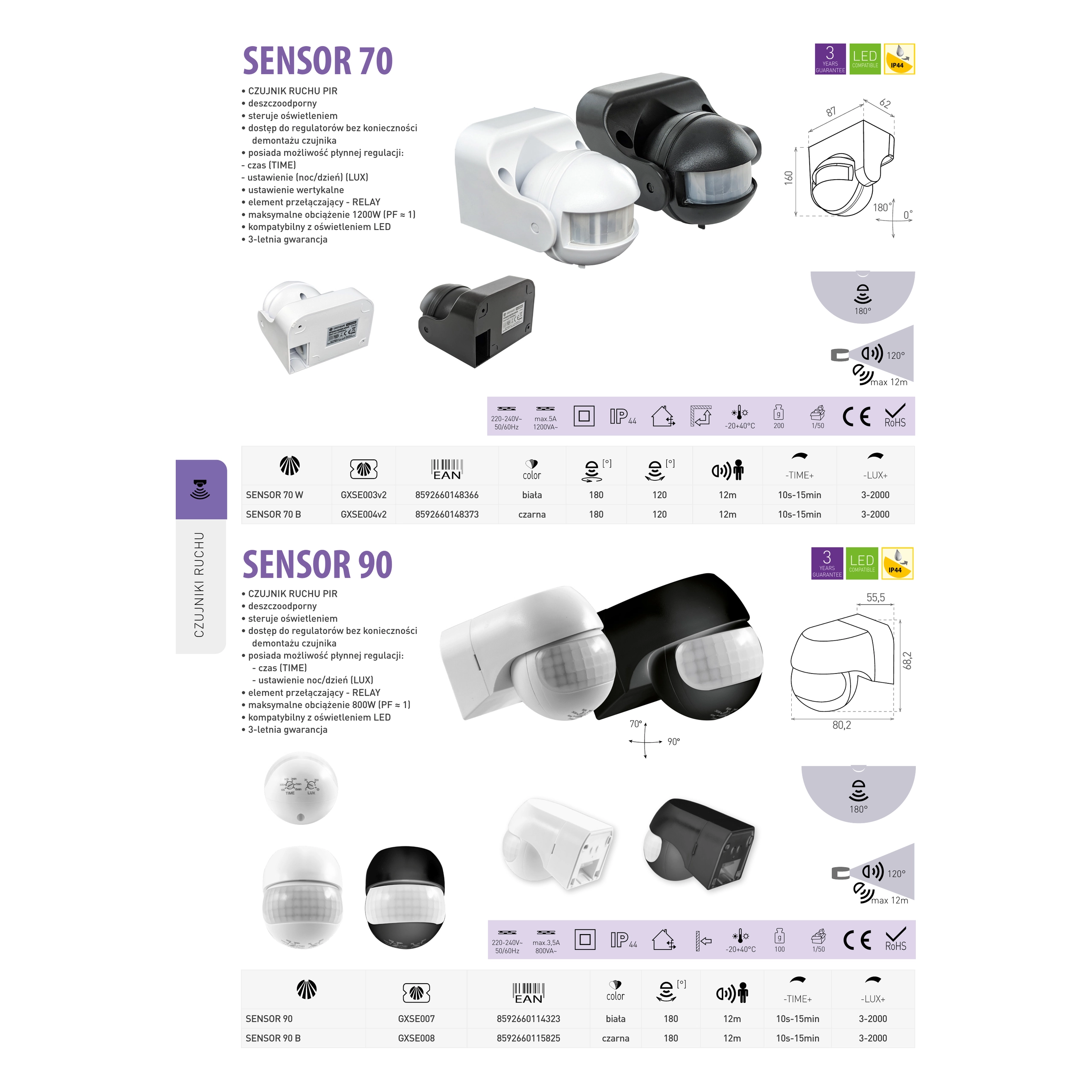 Czujnik ruchu PIR SENSOR 70 B do oświetlenia i lamp LED