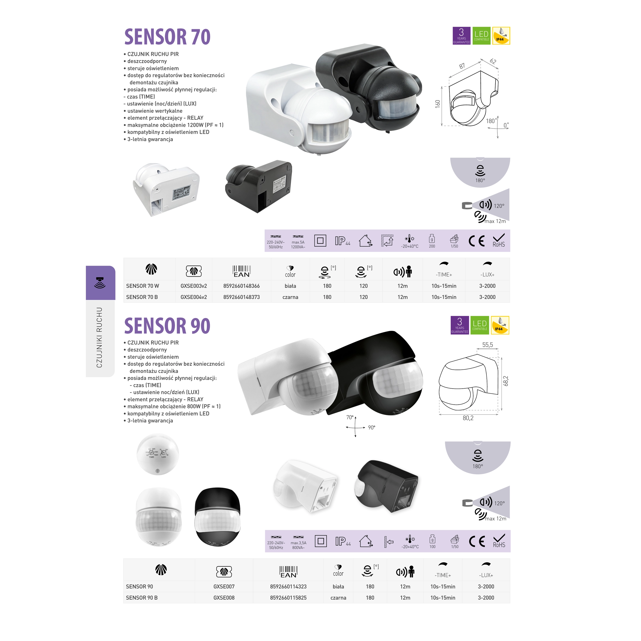 Czujnik ruchu PIR SENSOR 90 W do lamp i oświetlenia LED
