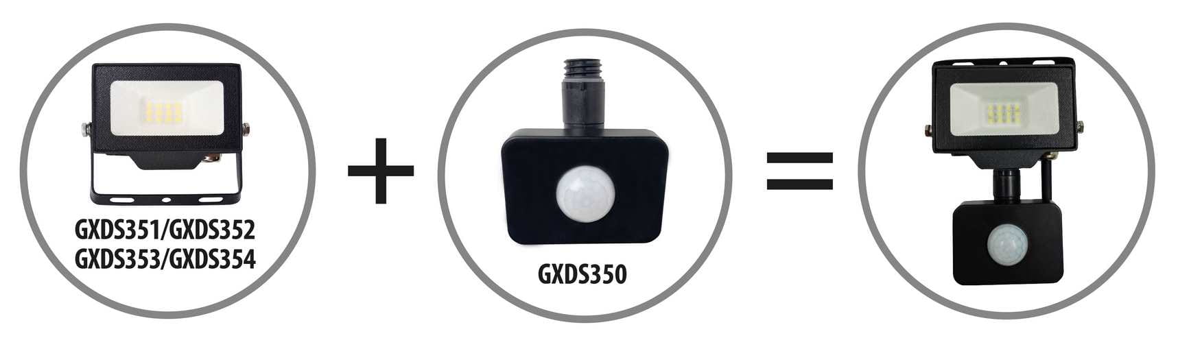 PROJEKTOR LED SMD• przeznaczony do oświetlenia wnętrz i przestrzeni zewnętrznych• obudowa: aluminium lakierowane proszkowo• klosz: hartowane szkło• wysoka energooszczędność i wydajność świetlna (Oszczędność energii do 83% w porównaniu z reflektorami halogenowymi.)• pyłoszczelna i wodoodporna obudowa• płaska, zwarta konstrukcja • montaż za pomocą uchylnego wspornika montażowego• zasilanie za pomocą przewodu o długości 25 cm• może być stosowany w warunkach temperatury otoczenia w zakresie -25+45°C.• długa żywotność 25 000 godzin.• szeroki kąt rozsyłu światła 120 °.• możliwość dokupienia czujnika ruchu PIR GXDS350 który można łatwo zainstalować za pomocą jednego kliknięcia i przekręcenia.