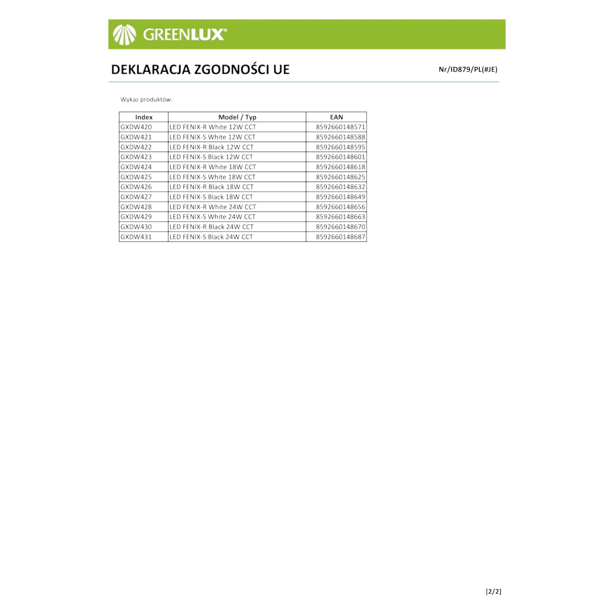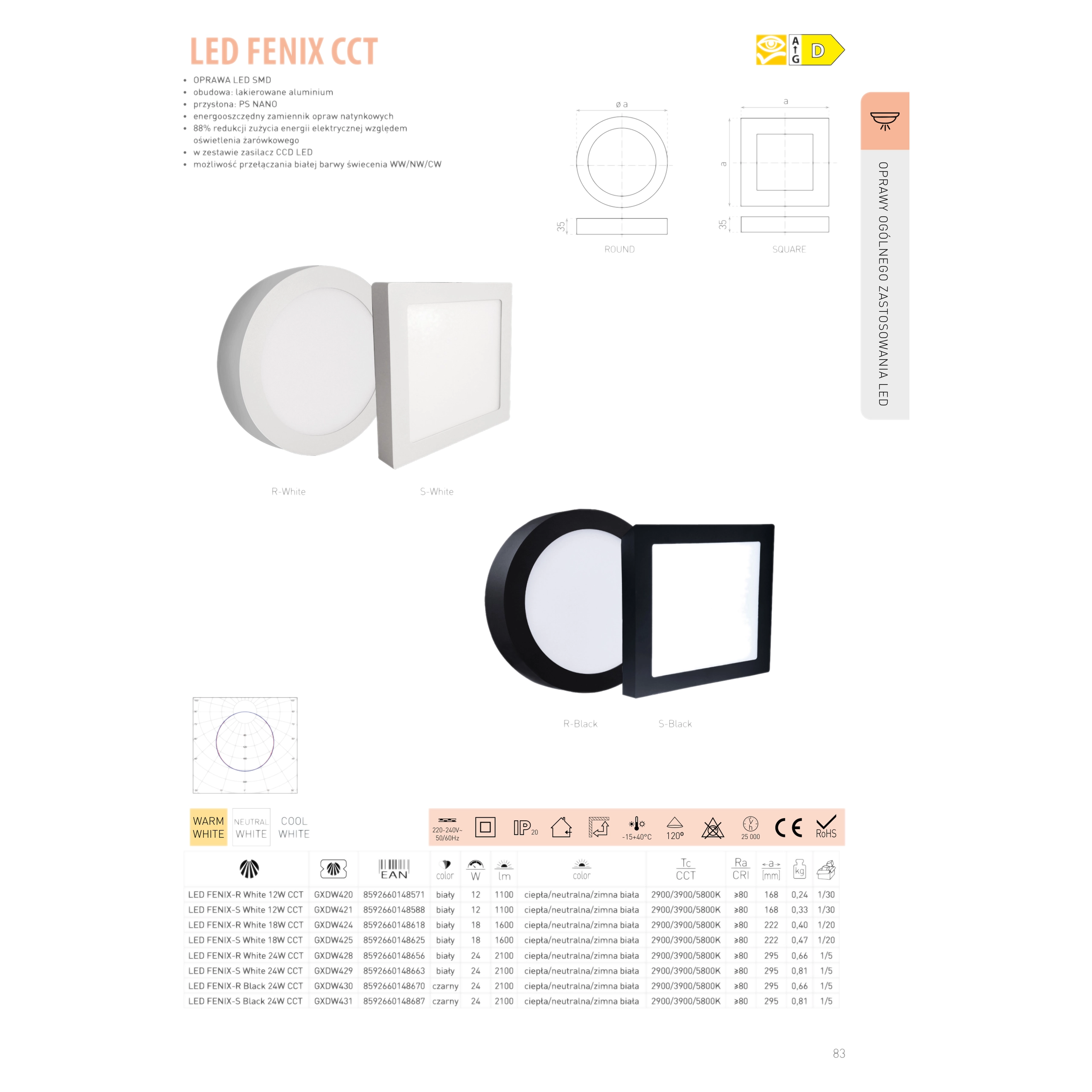 Greenlux LED FENIX-S White 24W CCT 2100/3220lm - Oprawa LED natynkowa n/t (Downlight LED) to downlight LED, który łączy estetykę z oszczędnością energii — komfortowe, równomierne światło na co dzień.