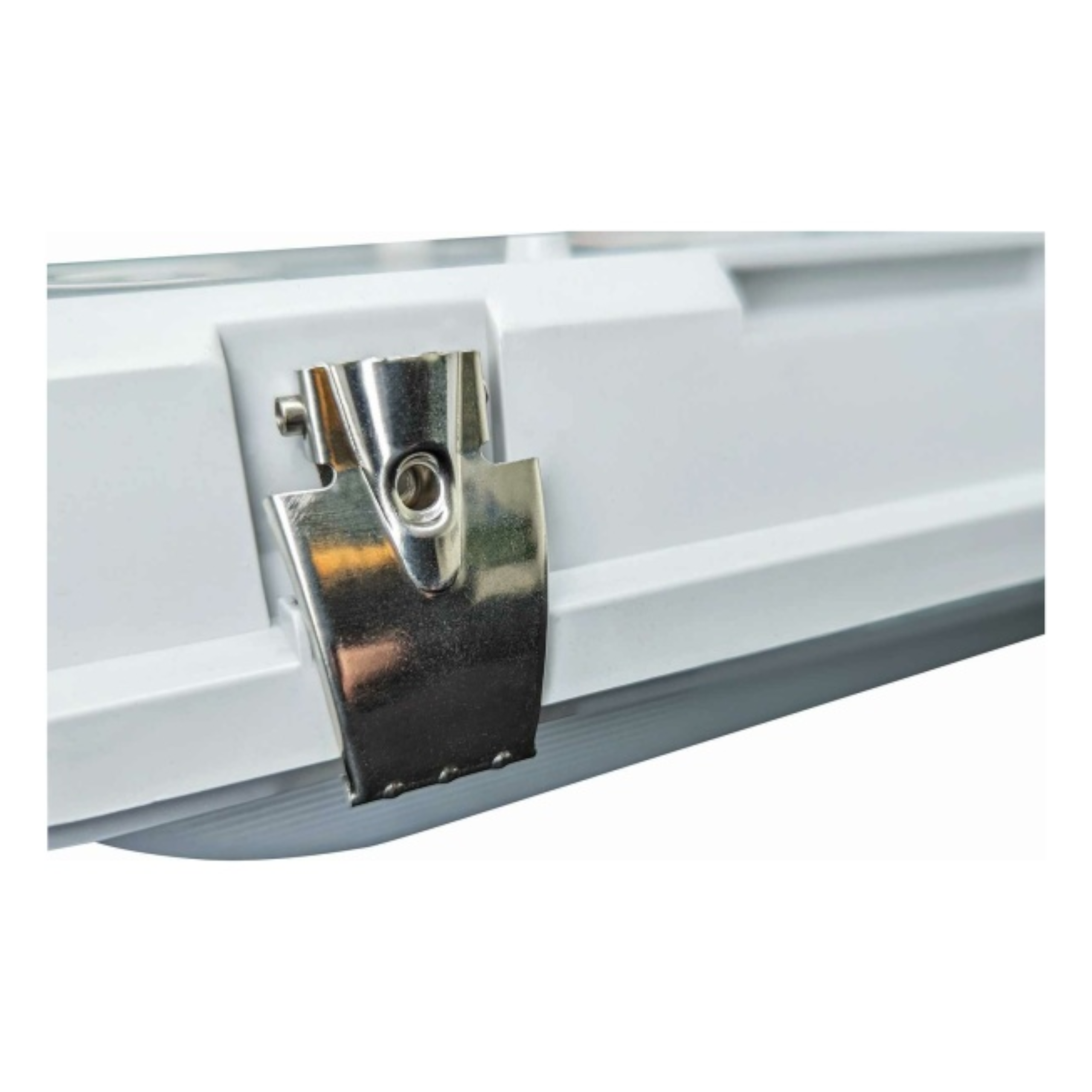 OPRAWA HERMETYK LED SMD• korpus – tworzywo sztuczne (ABS)• klosz – poliwęglan (PC)• metalowe klamry łączące klosz z korpusem• możliwość wprowadzania przewodów zasilających również od góry obudowy• szybki montaż do ściany / sufitu na zasadzie „klik”• łatwe podłączenie elektryczne – bezśrubowa listwa 5-biegunowa• możliwość łączenia w pętlę i łatwa adaptacja do okablowania przelotowego• energooszczędny zamiennik opraw świetlówkowych T8• wysoka wydajność świetlna – do 152lm/W• pyłoszczelna i wodoodporna obudowa• równomierne rozpraszanie światła• skompensowana moc bierna – współczynnik mocy PF?0,95• 5-letnia gwarancja