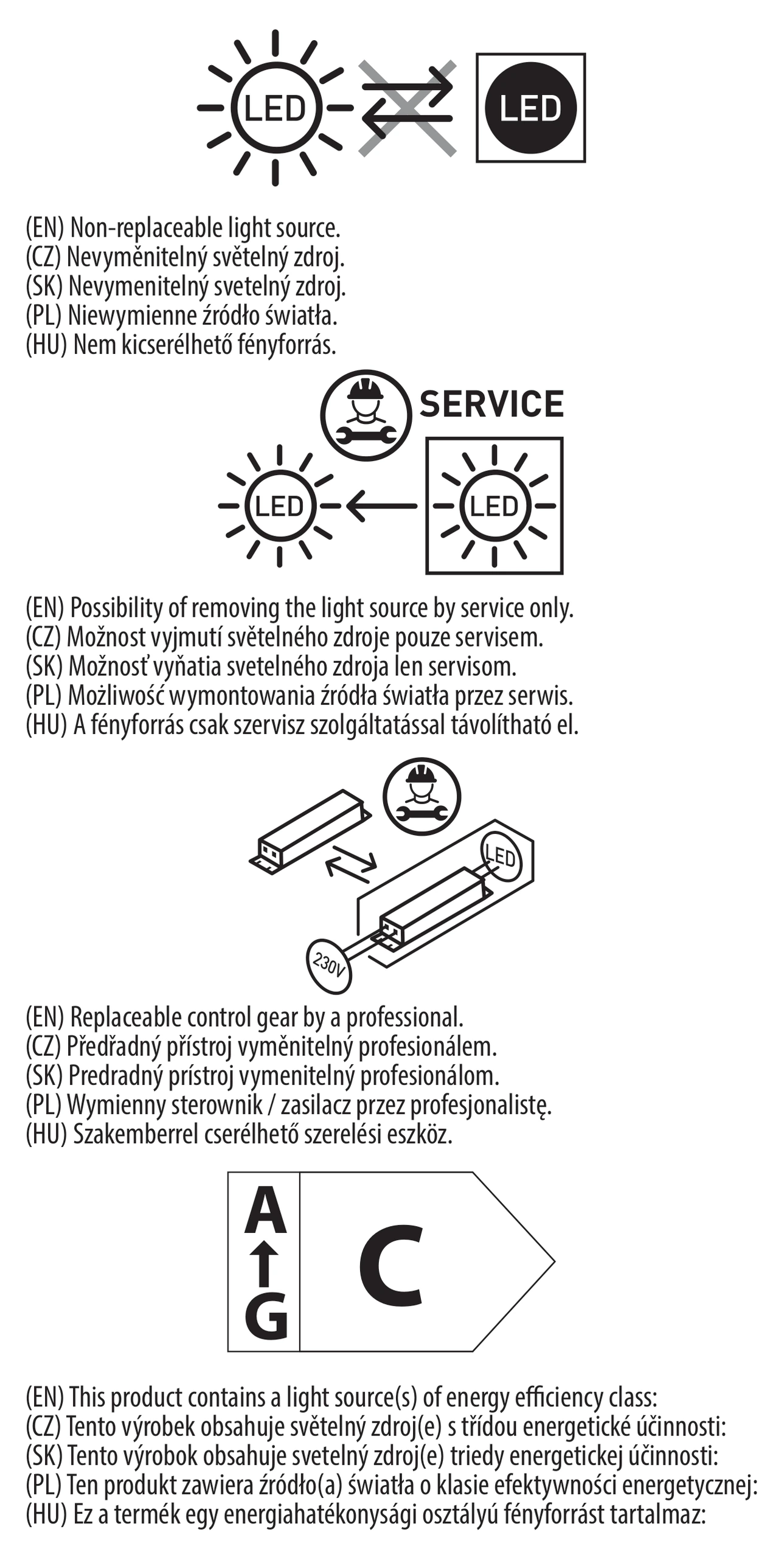 - możliwość łączenia przelotowego (max.: 20W - 15 sztuk, 28W - 10 sztuk, 36W - 8 sztuk - w jednej lini, przy użyciu bezpiecznika MCB B16)